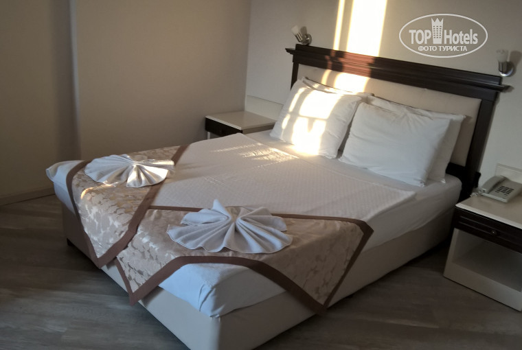 Была в отеле в июне 2018года. Рейс был ранний, в отель привезли быстро. Проблем с заселением не возникло. Если номер свободный есть здесь всегда пустят раньше. На входе обязательно встретят и улыбнуться. На русском говорят минимально почти все сотрудники дневной смены, есть и кто говорит очень хорошо. А ночью и вопросов меньше возникает. Сотрудники в основном приезжие и проживают в съемном жилье не далеко от отель. Все производят положительное впечатление, хотя мельком слышала что жалуются на зарплату(дескать мало и не вовремя). По приезду сразу настроили мне WI-FI, связь была везде на территории отеля. Для звонка через мессержер нужно было выбрать утро, для смс любое время. Еще вариант подключиться к кафе или отелю напротив. Отдыхала одна, но там в отеле это не чувствовалось вовсе. Русских была большая часть постояльцев. Всегда было с кем поговорить и с кем пойти на пляж. Есть автобус по графику. Время прям скажем не очень подходящее. Автобус едет небольшим кругом, собирая постояльцев из других двоих, троих отелей. Если желающих много может повторить маршрут. Дорога до пляжа правда через пустырь, по солнцу минут 15-20. К второму или третьему дню уже проходиться незаметно, главное накрыть голову. Для свободных дам поводом получить внимание мужчин будет идти с пляжа не одев платье, только в купальнике. Мужчин в районе гостинице достаточно много, как и в гостинице. Так что красавицы, что не любят назойливые приглашения могут здесь нервничать. Одиноким на ручку двери можно и стакан повесить на ночь. Я конечно не очень верю, но некоторые пересказывали байку что ночью могут прийти полежать рядом. На пляже так же есть интернет. Лежаков хватает всем, первый ряд у моря занимают с самого утра те кто не по ленился пешком пройтись. Пляж-песок основное, есть полосы мелкой гальки по берегу. Душ и место для переодевания предусмотрены. Кусок с пляжем отеля не широкий, ляжешь не на тот лежак попросят уйти. Сотрудники местного бара очень внимательно смотрят на браслеты, если не видно могу попросить показать. Я не зацикливалась на территория, гуляла по берегу. Есть места где можно лежать на своем или платно. Если смотреть на море и пойти на право до каменного берега и подняться выше, можно пройти в часто упоминаемый Манавгат. Я так прошла днем у полудня и как раз на входе встретилась с туристами что приехали на автобусах из других отелей. Не честно подслушала экскурсию и далее прошла к руинам и развалинам, Музей и рынок на горе так же может быть интересен многим. Все в пешей доступности от отеля можно сказать. Если устраните всегда есть где посидеть отдохнуть, лавочки и разные кафе на каждом шагу. В день приезда соблазнилась на уговоры местного держателя массажного салона и подвале отеля. Проводиться все в купальнике. Прогрели меня с парилку, кстати, вход свободный туда в любое время. Далее хамам и процедура очищения, пилинг ног рыбками и общий массаж маслом. Расслабляет с дороги превосходно. Чай или кофе предлагают всегда. На пилинг я уже бесплатно ходила с позволения хозяина каждый день. Добрейшей души человек. Хочет выучить русский в совершенстве и потому много говорит. Сотрудники девушка и мужчина, если Вам есть значение. Здание может и не новое, но после косметического ремонта. Все максимально стараются преобразить каждый день. Чистенько и у бассейна. Жила в о