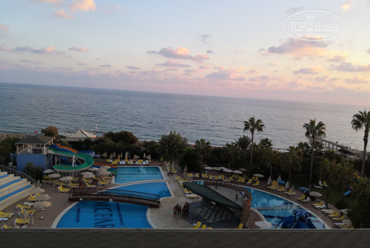 На мой взгляд плюсов у отеля все-же больше, он выгодно отличается среди близрасположенных, как пляжем, так и зеленой территорией, удаленностью от дороги. Многие даже дорогие отели стоят прям на трассе, или находятся через дорогу от пляжа и народу приходится в купальниках с кругами в зубах таскаться до пляжа по пеклу. Для тех, кто любит лежать амебой весь отпуск на пляже - это идеальное место. На территории отеля есть все, чтобы не покидать его, даже персональная фотосессия за отдельную плату, катание на верблюде и пони. Аниматоры стараются: днем- водное поло, зарядка в бассейне, дартс, вечером- дискотека, караоке, танцы с детьми и прочее. На мой взгляд громковато играет музыка часов до 12 ночи, но балконная дверь хорошо блокирует звук. Для тех, кто любит активный отдых, скучноватый поселок, я бы разместилась в следующий раз в самой Аланье.