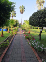 2)Зеленая ухоженная территория- прекрасный экзотический сад с пальмами, кактусами, олеандрами и другими цветами.Есть красивый фонтан в тени, где приятно посидеть за столиком, попить кофе.