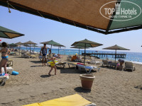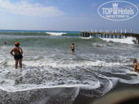 Плюсы:1)Свой пляж (песочный, заход в воду галька), никаких плит нет, говорят их срезали. Лучше всего спускаться в воду с пирса по лесенке и также из воды назад. Тогда ни галька, ни волны не помеха для комфортного плавания. Бывают волны, что зайти в воду страшно, а иногда штиль обсолютный. Шезлонги и зонтики бесплатно предоставляет отель. А какое море! Оно теплое, чистое, потрясающего цвета бирюзы!