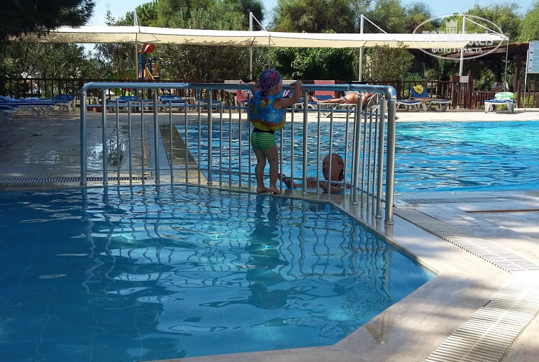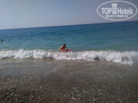 Искали небольшой, спокойный отель для отдыха с 2-х летним ребенком. В принципе, что хотели, то и получили - отель для пенсионеров и детишек (детям старше 4-х лет будет не очень - для них нет никаких развлечений). Заехали в отель мы в 22.00. Решили не рисковать и дали в паспорте сразу 20$. В итоге, вместо таррасы-рум нам дали пентхауз. Это небольшая комната на 3-м этаже с двумя кроватями (2-х спальная и 1,5-спальная). Нормальный номер. На след. день заглянули к соседям в террас-рум. Все тоже самое только поменьше метраж комнаты. Был минус при заезде - мы приехали и очень проголодались, но нас не покормили, т.к. ужин до 20.30., позднее можно поесть только за деньги. Убираются в номере каждый день, даже 2 раза меняли белье. В номерах очень плохая шумоизоляция. Питание нормальное для взрослых, детям есть нечего - несъедобные каши и супы. Ребенок у нас питался фруктами (покупали рядом с отелем , особенно вкусная клубника)))) и пюрешками которые привезли с собой. Территория отеля небольшая. Два маленьких бассейна, а детский так вообще малюсенькое корытце и горок для детишек в бассейне нет. Детский городок предоставляет собой небольшой домик с двумя горками и качелями(очень маленький и неосвещенный это плохо), вообще на всей территории отеля очень плохое освещение, после 19.00 гуляли в потьмах. На сайте отеля пишут что пляж песок - но это не так, там галька. Купались в море в спец. тапочках. Море было замечательное, чистое, теплое, волны небольшие. Заход в море не очень удобный - почти сразу глубина. Лежаки постоянно были заняты пенсионерами, мы располагались в отдалении от всех на полотенцах (полотенца везите из дома).