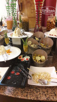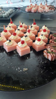 Обед - несколько столов с боксами с подогревом для еды - разные виды мяса, рыбы, овощей, Огромный стол с пирожными и тортами - все безумно вкусно!!!! Очень красиво оформленный и разнообразный стол для вегетарианцев.