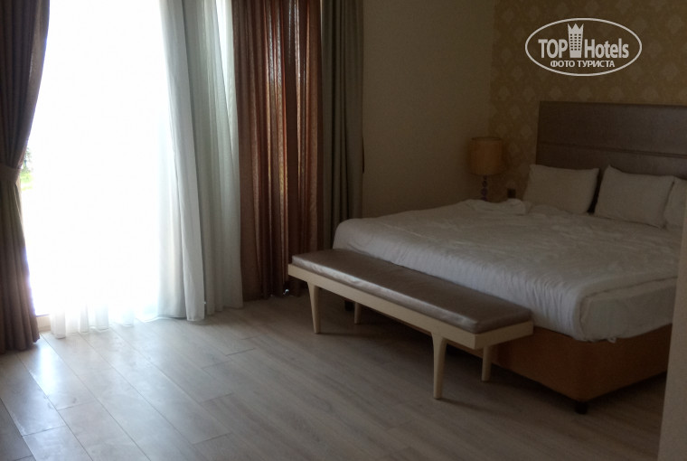 На следующий день, расспросив "счастливцев", попавших в свои номера, поняли, что надо оставаться в вилле (те жаловались, что все, что можно поломано в номере, и на грязь). Попросили остаться - гоняли несколько раз к рецепшн, "подойдите через полчаса, через час, в полдень", сутки отдыха насмарку. В итоге милостиво согласились нас оставить на вилле (вместе с другой семьей). Кстати, уборка на вилле нормальная. Поэтому за сервис и обслуживание 2 балла - один официантам, другой - горничным. По приезду в номере были тапочки, халаты, шампунь, гель, крем. Потом когда что-то заканчивалось, докладывали. Мини-бар пополняли газировкой и водой.