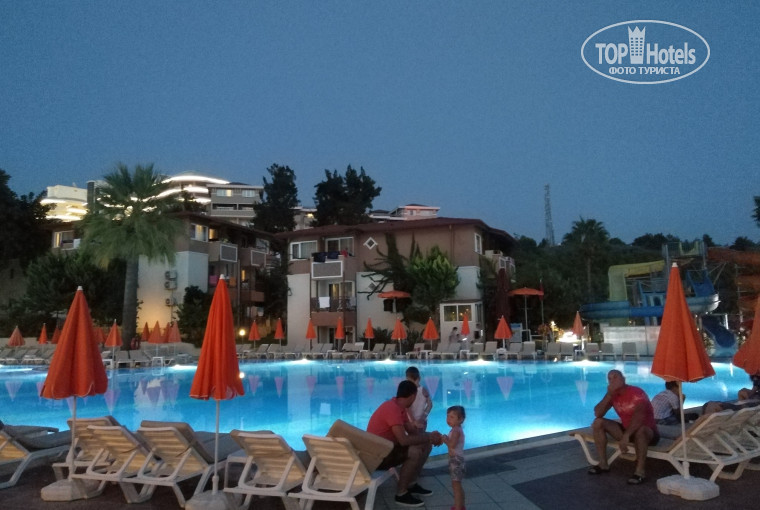 Семья с детьми 5 и 8 лет. Туроператор - Пегас, перелет с Казани с Северным ветром (все норм, только не кормят в полёте). Групповой трансфер в Аланию. Т.к. отель расположен в начале региона Алания, то завезли нас третьими по счету, по времени - 2 часа от аэропорта (остановка в пути на 15 минут напрягает немного). Заселение в порядке очереди, и не ранее 13-30, т.к. номера не готовы были. Пообедали, подождали и заселились в номер 1039. Коттедж был ближе к ресепшену, т.е. более-менее тихо, только мимо наших окон была тропа к зданию 7-этажному и в любое время ходили отдыхающие и шумели (ну не могут люди тихо себя вести, даже в 3-00 ночи). Номер неплохой, есть платный сейф (не пользовались), холодильник, фен в ванной, плоский ЖК телевизор (есть русские каналы, НО НЕТ ДЕТСКИХ!!!). Смотрели мультики на украинском языке, некомфортно слушать и не всегда понятно. Кондиционер сплит был, но он расположен прямо над кроватями, не могли ночью его включать из-за боязни простудить детей, а ночью очень душно в номере, открытый балкон немного спасает, но как говорил ранее - ходят шумят, будят. Белье толком не меняли, только полотенца, уборка заключалась в выносе мусора и протирке пола в номере по центру.