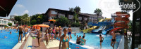 Территория отеля хорошая, много места где погулять и зелени, что спасает от солнца днем. Есть перепад высот, ступеньки, с колясками будьте готовы ездить в обход немного, людям с проблемами с ногами - не посоветую, тяжело. Есть 4 горки, работают по времени, дети оттуда не вылазили, очень нравилось. Всегда внизу спасатель, следит чтобы не было столкновений. Есть мини-клуб, дети иногда туда ходили, девочки там молодцы, детей развлекали разными конкурсами, играми и поделками. Есть большая сцена, где каждый вечер мини-диско для детей в 20-30, а в 21-30 - шоу для взрослых.