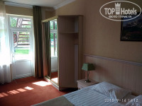 Что в номере - просторная кровать, столик с парой стульев, огроменный шкаф, ТВ с большой диагональю (каналов правда мало - все центральные), зеркало с бюро.