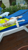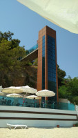 Пляж: Первый уровень - песок, он в принципе не очень популярен у отдыхающих. В основном все располагаются на деревянном пирсе, где лежаки и зонты, где прямо под вами вода ударятся о скалы. Вход в море с пирса. В один день утром были сильные волны, было особенно круто качаться на них лежа в надувном круге. Но постепенно прибивает к скалам, поэтому расслабиться получается только на время, потом пытаешься отгрести поближе к пирсу. Примерно до 12 часов все лежаки занимают, далее уже как повезет. На пляже есть бар, где можно сделать гамбургер, взять сосиски в какой то подливе, есть кофемашина (были случаи ее поломки), машина для газировок и т.п. Порой замечали, что выставляли фрукты, яблоки, виноград.