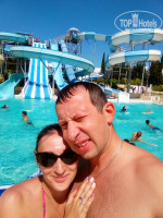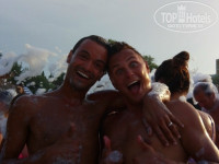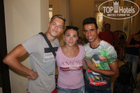 Бассейна там три. Один возле отеля. Большой. Второй с аквапарком. Горки классные. Накатались все от души. Только бассейн маловат. Очень много людей, особенно арабов, все друг на друге. Последние дни даже туда не ходили. И третий бассейн с морской водой, возле моря. Вот это был наш любимый. Во-первых потому что там нельзя арабкам плавать и там одни наши. А во-вторых потому, что там бар на воде прикольный, где мы пили очень вкусные коктейли. Клевый бармен Искандер! А ещё там проходила акваэробика с красавчиком Стефаном. Просто молодчина! Он хореограф. Ставит все танцы на анимации. Мы были в восторге. Вообще анимация очень понравилась. Аниматоры умнички. Скучать не давали никому. Понравилось очень что встречали и провожали нас с песнями и танцами. Хочется отметить Стефана, красавчика Вилли, Ромку и Леху. С остальными так близко не общались. Очень понравилась всем пенная вечеринка. С танцами, фаершоу, салютом и всевозможными закусками и напитками!