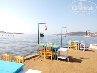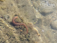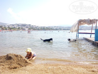 3. Пляж.От отеля до пляжа идти минут 10 не более. Его нет,но уже об этом много написано.По утрам я с дочкой ходила на пляж с розовыми лежаками Angel beach ,что справа от центрального входа. До 11 утра мы спокойно плавали,отдыхали,к нам никто не подходил. Потом мы шли на другой пятачок рядом,где можно было детям поиграть у берега в песке.Там вся наша компания из отеля располагалась на песке. Охранник территории порывался пару раз сказать,что нельзя загорать здесь,но ..безуспешно.Пляж общий,лежаки не занимаем и сидеть и лежать можно где угодно. Потом мы уже передвинулись на пляж левее,минут 5-7 пройти,синие лежаки.Там вообще никто не подходил и вход в море был удобен,только песок,без камней. Кстати,там где камни и водоросли,можно наткнуться на такое чудо ( обитает в Эгейском море), жалит не по-детски,но без последствий. У меня,по крайней мере. Зиртек,супрастин,мазь противоаллергическая-и все ок!