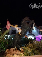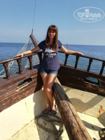 Были с сыном 4года с 8 по 22 сентября за 53т.р все включено. Писать буду много. Отелю огромный привет и большое спасибо за гостеприимство. Как обычно по порядку. Завезли в отель, сначала немного расстроилась, как оказалось такая первая реакция у всех. Забегу вперед улетали со слезами вместе с ребенком, хотелось остаться еще, 15 дней нам было мало. Итак заселение, в течение 5 минут без проблем, номер нам достался 228, корпус напротив бассейна, окна выходили назад. Из минусов номера это кондей который еле дул, но так как была с ребенком это был плюс, я не переживала за него. Еще ванна конечно выглядит не респектабельно, но в любом случае я моюсь в шлепках, в любом отеле, мне было все равно. Т.е. все минусы у нас мимо. Сам номер просторный, нам понравился. Далее уборка, мы через день вешали табличку, смысла в ежедневной уборке я не видела, мы не свинячили. Оставляли 1 динар, нам не жалко, уборщице приятно. А убиралась она достойно, всегда тул. бумага стояла в запасе , полотенца меняла, постель тоже, так как пару раз ребенок оставил пятнышки. Территория у отеля большая, мы гуляли везде, кормили ослика на заброшенном складе, играли на детской площадке, вообщем зашли куда е было можно. Бассейн достаточно большой перед отелем, рядом детский и крытый, но туда никто не ходил, там было очень душно. По поводу еды, отзывы читала знала куда едем. Единственный момент это мясо, как и писали его мало, но это 3 ребята, вы чего ждете то??? Голодной не ушла ни разу, всегда что то было, макароны рис картошка в разных видах, овощи тушеные, поочередно колбаса, крабы, индейка, курица отличная, котлеты, ну овощей полно, даже свеклу давали. На завтрак творог, йогурт, колбаса, булочки, яйца, жарили блины или яичницу, овощи, омлет, пироги. Из сладкого мы заценили шоколадные и миндальные торты и пироженки, они всегда на высоте, еще что то на подобии наполеона и чародейки, другие на любителя. Из фруктов были арбузы, дыни их надо было выбирать, раз попали на несладкую, в остальные дни были вкусные, и виноград. Еще что то похожее на мороженное, но мы брали редко. По поводу остроты, ели без проблем и я и сын, выбирали просто без специй, либо просили повара те же макароны дать нам отдельно пресными. Ни разу не отказали, и если что то заканчивалось тоже выносили без проблем. Воды полно, чай тоже в любое время с 7 до 22.Про спиртное не напишу, я его не пью совсем, ничего не пробовала, НО была компания 3 женщин и 1 мужчина, они с утра выпивали все что там было, вели себя просто треш, очень было стыдно за таких. Не будем о грустном. На обед и ужин еще делали вкусную пиццу или лепешку, не знаю как назвать, но в начале просто помидоры и сыр, к концу уже пекли просто обалденные с маслинами и кучей всего. Для нас даже была спец. сделана в виде сердца, повару привет, надеюсь на нас не обижается ни на что. Вообще ГРОМАДНОЕ СПАСИБО персоналу за доброту и отзывчивость, очень все приятные и доброжелательные. Вообще наверное благодаря им и аниматорам отдых прошел очень душевно. Ребенок у меня очень активный и за все время пребывания успел со всеми перезнакомиться, жаль друг у нас появился лишь в последний день. Про анимацию, тут вообще все было супер, с первого дня сын каждый вечер бежал на мини диско, даже когда была температура он сказал что пойдет туда, хотя весь день просидели в номере. Ребята старались как могли, до сих пор вспоминае