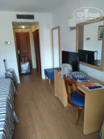 Отель представляет из себя 2 корпуса, виды на воду есть только в верхних номерах и то не во всех, в некоторых можно увидеть краешек воды(отел стоит немного боком к пляжной линии).Между корпусами идет закрытый кондиционируемый коридор из стекла. Бассейн находится перед дальним корпусом, он очень маленький, в нем вечная давка, грязноват и очень сильно хлорирован. Шезлонгов на всех не хватает, после 14:00, когда жара становится невыносима и все угодят с пляжа в тень отелей, мест в нём нет, тем более под зонтами, но опять же мы были в самый пик сезона). Первый корпус смотрит на одноэтажное здание ресторана.Бассейн работает с 10 до 18:00.