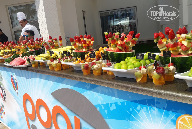 Хорошее разнообразное питание, йогурты, молочные коктейли, соки в упаковках огромный ассортимент мороженого, кофейня и рестораны А ля карт супер. Мороженое на пляже 5-6 видов.