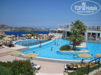 Бассейны мы не любим,но как-то плескались в джакузи, обожаем море, а здесь замечательная бухта и даже в ветряную погоду можно всегда купаться! На пляже есть бар,где можно даже перекусить и выпить пиво, прохладительные напитки, коктейли, мартини!