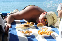 Питание. Всегда есть что поесть и взрослым и детям. Есть отдельный детский стол. На завтраках всегда была овсяная каша, яичница или омлет, вареные яйца, свежие овощи, фрукты, свежая выпечка. На обед никогда не ходили, кушали на пляже, здесь готовили пиццу, гарниры, также свежие овощи и фрукты.