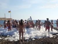 Один день посвятили отелю Lake River. Решили сначала посетить его вечером после ужина, но на входе нас остановил охранник, проверил браслеты и не пропустил. Сказал «вечер нельзя. День можно ходить, пить, есть, а вечер нельзя!». Поэтому на следующий день прямо с пляжа в 10.45 мы сели на автобус и поехали прямо в отель. Зашли на территорию, расположились возле бассейна и тусили там до 15.30. Пили коктейли, кстати в Lake River коктейли вкуснее и выглядят привлекательнее. Горок в Lake River 5шт, 3 горки со спуском в бассейн с соленой водой и две горки со спуском в большой бассейн. Есть горка для малышей (в нашем отеле был только грибок с дождиком). Отобедали в этот день мы также в Lake River, нам всем троим показалось, что обед у них скуднее, чем в Порте, но зато мы отведали утку в апельсиновом соусе, было очень вкусно! Обратно из отеля, также автобусом, мы вернулись на пляж. И нам повезло – на пляже проходила пенная дискотека. Мы с ребенком быстро сбросили одежду и понеслись в пену. Было очень весело! Нам понравилось!