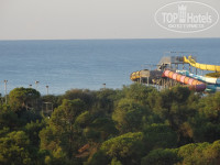 Номер на 5-м этаже, расположен возле лифта, с одной стороны соседний номер, с другой лестничная клетка. Окна номера выходят прямо на вечернюю дискотеку, бассейны. С балкона, по левую сторону, видны река с корабликами, горы, по правую сторону – подземный переход через дорогу, дорожка к морю через хвойные заросли и само море. В номере все работало. Фен порадовал, сушит волосы очень хорошо и быстро, 2 скорости сушки. Ежедневно пополняли шампунь, гель-душ, реже докладывали лосьон для тела и кондиционер для волос. За 14 дней положили 4 упаковки мыла. Шампунем я всегда пользуюсь своим. Мои мужчины пользовались отельными средствами. Средств нам хватило и даже всего понемногу осталось.