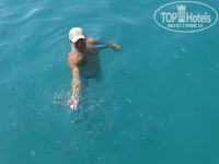 Море – сказка! Теплое, нежное, чистое, +26!!! Мы ходили кормить рыбок на пирс Наширы. Муж даже кормил их с руки, находясь в воде. Море такое чистое, что на фотках видна каждая рыбка. Попробуйте, Вам понравится. Полного штиля на море здесь не ждите, но покачивание на волнах такое блаженство! Даже вечером, засыпая в номере на кровати, представляла себе покачивание на волнах и сразу засыпала, под звуки грохочущей дискотеки))). (кстати, грохотать она начинает с 22.00 и заканчивает в 23.30).