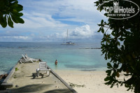 Пляж. Есть 3 небольших пляжика, поплавать можно, но конечно это далеко от настоящих Мальдивских пляжей с белым песком, шагающими пальмами...