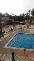Территория отеля. Бассейн большой приятный, но купаться там нам сразу непосоветовал местный гид, т.к. вода стоячая и ротовурис там повсеместно, детей пришло забрать и долго настраивать на море. По наблюдениям там купались только иностранцы, наши хотели провести отдых не на гнезде в орлиной позе. Лежаков достаточно их закупили и превезли во время нашего отпуска, столиков тоже. Есть деская площадка с горкой. В лобби есть wi-fi, но ловит из рук вон плохо, мы купили местную симку и раздавали интернет на 2 телефонпа цена вопроса 7$, но ловит хорошо и стабильно. На территории есть ослик, в соседнем отеле верблюд, можно свободно подойти и покормить, для детей очень даже, да я и сам с верблюдом не прочь был пообщаться диковина всё-таки. Есть волебольное поле, футбольное и теннисный корт, всё рабочее с удовольствием на мероприятия собирают аниматоры и все играют, опять же ненавязчиво, что очень важно.