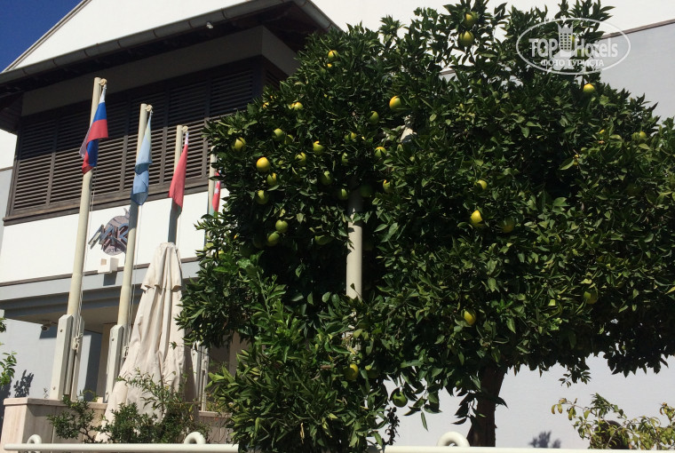 Территория отеля небольшая, но уютная, особенно нам нравилось кушать под апельсиновым деревом )) А вот с интернетом все не так хорошо, в номере почти не ловит, у нас работал только на балконе, так что если хотите посидеть в интернете – милости просим поближе к бару ))