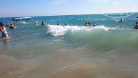 Погода начале октября днем +30-35, вечером +20-22, вода +24-26 . один раз были волны. Ветер с утра с берега ,после обеда с моря.
