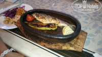 Теперь минусы : 1.КОФЕ!!! 2-, вкус растворимого(?) 2. Официанты не навязчивы - за вином бегал сам.или если попросишь. 3. Салаты бывали "задумчивы",запашок несколько раз был .Сильно с уксусом чтоб запах отбить.. Лично видел как конце обеда или ужина что то выкидывают а что то под пленку. Поэтому в основном брали то что нарезали на глазах. На отдельном столе. 4. Рыбу готовить не умеют.Не вкусно.Одна и та же рыба вчера была окунь, сегодня это уже судак. А на самом деле это берш.Форель невкусная.Морепродукты редко. Мидии варенные с крабовыми палочками вообще шедевр!! 5. Алкоголь.Только вино бел.п/сладкое.Более менее прилично. Иногда пиво. Виски бренди ром-ни о чем.Только немцы вечерами довольны..Спасал грузинский коньяк и "Столичная" взятые с собой. 6. Соки ...ну может яблочный. Остальное как в рекламе юности- "...просто добавь воды!"