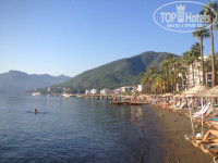 Второй раз в Мармарисе, и приехала сюда из-за чистейшего и красивейшего моря, которое полюбила раз и навсегда!!! Но с пляжем у отеля огромные проблемы!!! Хуже шезлонгов чем в Идеале мы не видели ни где, их нужно выкинуть на помойку и не позориться!!!!!!!!!!!!!!!!!!!!!!!!!!!!! На пластиковых лежаках нет матрасов, мне кажется это сделано для того, что бы отдыхающие там не задерживались, а освобождали место для других. Территорию практически не убирают, только мусор из урн, а под лежаками, что закатилось, то и осталось до следующего утра, ничего, мы подберём!!! Лежаки не протирают, песок с них не сметают, впору со своими щётками ходить на пляж, про окурки я молчу, это уже часть пляжного песка)(((