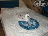 Ровно через пол часа после приезда нас заселили в номер(без каких либо доплат). Мы бронировали Ду-плекс. Номер супер, дети в восторге. В номере всё как мы и ожидали – чай, кофе, мини бар (пополняли в течении всего отдыха и водой и газировкой), фен, полотенца и т.д. Всё в наличии, всё рабочее. Номер за 10 дней убирали 3 раза, всегда с украшениями на кроватях (лебеди, рыбки, цветочки).Вообще убирают каждый день, либо через день, просто мы вешали табличку не беспокоить. Убирали всё хорошо, полотенца меняли если оставляли их на полу. Так что в номере всегда был приятный запах и чистота.
