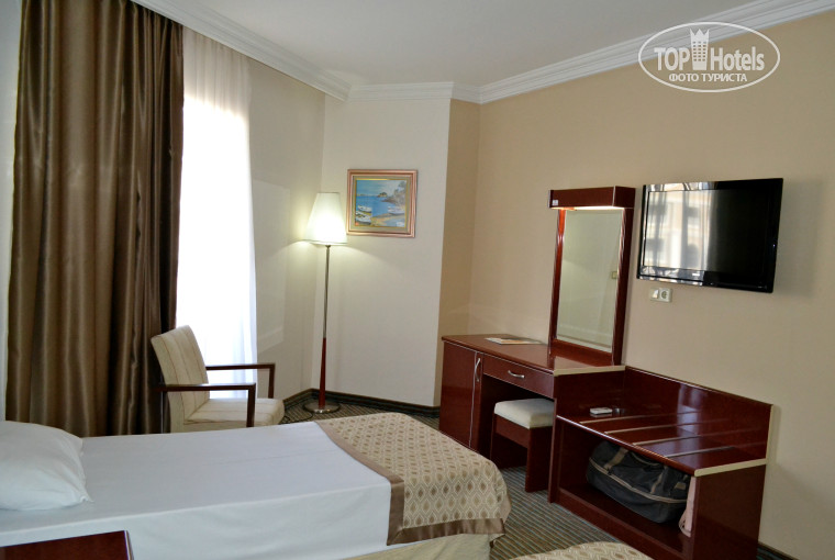 Вылетали из Ростова -на -Дону 7.10.18г. тур оператор Coral Travel.Прилетели в Анталью вовремя задержек не было.Так же и с трансфером.До отеля доехали за 2часа 15 минут.Так как в отель прибыли в восьмом часу вечера и на ресепшн ни кого из вновь прибывших не было,нас заселили быстро.С хорошим видом на море,2-ой корпус 4-ый этаж.Правда за это пришлось заплатить 20$ улыбчивому администратору.Мальчик подхватил чемоданы и проводил нас в номер.Помог ввести код в сейфе и удалился.Номер хороший без всяких минусов.Пыль по углам и пятна на матрасах не искали.Сплит система работала очень тихо,в холодильнике соки и вода.В последствии пополнялось только водой.В ванной комнате есть всё необходимое(шампунь,мыло,полотенца банные,лицевые,для ног,фен).Полотенца меняли,если бросали на пол.Умывальные пополняли по мере их окончания.Уборка ежедневная.Единственное,что не нравилось-это запах сырости в номере.