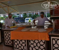 Отель большой,людей много.Официанты с трудом успевают убирать грязную посуду и не всегда успевали ложить приборы.Нас не затрудняло самим пойти и взять.