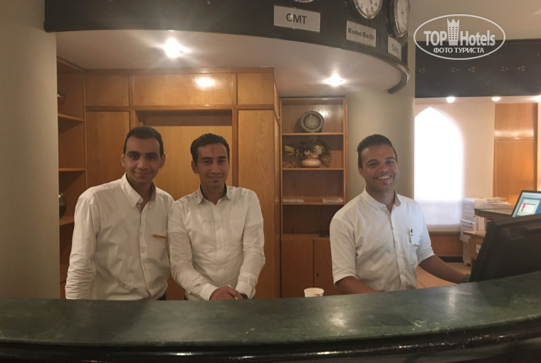 На рецепшене Карим опытный менеджер. Махмуд молодой и не женатый тоже хороший менеджер. Хороший и чистый пляж.