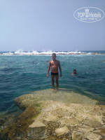 ПЛЯЖ. Несмотря на то, что отель находится на первой линии до нормального пляжа все равно придется идти, а не вот - прошел сто метров и тебе песочек. Дорога на пляж идет с горы, обратно возвращаетесь, соответственно, в горку. Как таковой дороги нет, с колясками будет проблематично. Т.к. полуостров сам по себе каменный, и заход на пляж труднодоступный- одни плиты и камни. Прямо на спуске с отеля висит предупреждение, что купание в данном месте опасно и ответственность лежит полностью на самих отдыхающих. Поэтому все, в основном, купаются в небольшой лагуне чуть левее. Там тоже плиты и камни и заход плохой, но есть перила (хоть какая-то опора). Лежаков нет, все загорают на полотенцах. Есть немного живности, можно поплавать с масками, в камнях водятся крабы-можно поймать.