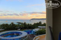 Отдыхал в начале июня и попал наверно в самое удачное время между дикой жарой и сезоном дождей и тайфунов. Отель очень понравился.После приезда разместили быстро,дали номер с видом на море(хотя я брал с видом на горы).Гид все сделал сам в плане оформления и заселения,все показал и выдал талоны на питание(оплатил только завтраки).Номера нормальные,но подуставшие. В них все работает,но чувствуется что отель не новый.В номере были холодильник,ТВ и чайник.Чай,кофе,сахар,сливки сухие и воду каждый день добавляли.При заселении и отъезде дарят фрукты и печенье. Питание на завтраках было хорошее, разнообразная европейская и китайская кухня. Действовало правило "чистых тарелок" что при "шведском стол" наверно плюс. Пляж песчаный и пологий, море очень чистое. Так как пляжи в Китае все общие большой плюс отеля, что пляж обособленый и на нем нету толпы как на остальных. Единственно доставляло дискомфорт это китайская дисциплина,когда за тобой бегает человек со свистком если ты пытаешься поплавать за буйками или когда по их мнению на море большие волны. Китайцы плавают плохо и если заходили на глубину то только с кругом.На обед и ужин ходили в ТРАКТИР там очень хорошая русская кухня и большие порции или покупали еду в магазине и ели в номере. Брали экскурсии обзорные и в центр Нань-Шань очень понравилось. Еще от отеля ходит множество катеров по всему заливу. Рядом с отелем за забором база китайских ВМС о чем висит предупреждающая табличка.