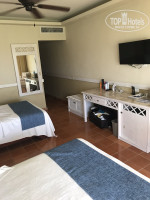 Номер вполне хороший, чистый ухоженный, были 2 европейские розетки,остальные американские, матрасы, подушки очень удобные, постель, полотенца белоснежные. Несколько громкий общий кондиционер, но абсолютно им не пользовались, пользовались только вентилятором на люстре, в номере была довольно комфортная температура. Убирали очень хорошо, даже без чаевых. Насекомых, ящерец, в номере не было, хотя ящериц видели на лужайках возле отеля, но они абсолютно безобидные! По-поводу комаров за время отдыха ни одного замечено не было!