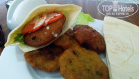 Вот и в этот раз, первый человек, с которым я познакомился, зайдя в зал - был су-шеф. Хотя он и не говорил ни по русски, ни по английски - но общий язык мы нашли сразу, и в этом году уже он водил меня по стойкам, показывая, что обязательно нужно съесть сегодня, а иногда даже готовил нам персональные блюда на завтрак. В последние пару дней из отпуска вышел шеф (я про него писал в прошлом отчете), и его зам стал проводить больше времени на кухне, что не мешало ему готовить нам фалафельки на завтрак и напихивать полные руки дефицитных бананов ;) Позитивнейший человек!