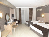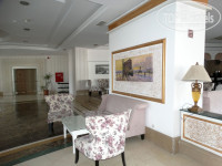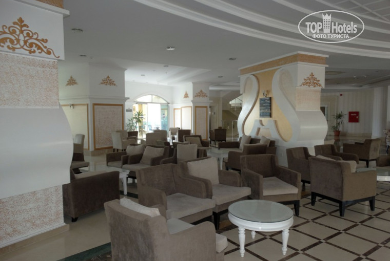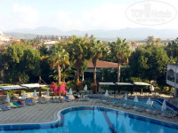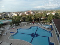 Территория отеля не очень большая, но уютная с красивыми цветами и пальмами. Сам отель тоже красивый и снаружи и внутри. Вечером включаются подсветки соседних отелей — вид сказочный! Отель имеет основной бассейн, релакс, детский и для горок. Водичка чистая, умеренно-хлорирована. Лежаков всегда хватало в октябре, как и на пляже. Мы в в основном были на море, поэтому бассейны не интересовали. Пару раз покатались на горках и все. Внутри отель устроен в османском стиле в кофейно-пастельных тонах. Есть несколько зон. Отель стоит на горе, есть номера идущие вниз и вверх — между ними ходят лифты со стеклянными дверями — очень красивый вид. На нулевом этаже, стандартно ресепшен (лобби). Практически весь персонал говорит по-русски, хотя отель традиционно «немецкий». 70% отдыхающих были немцами! Анимация идет на 5-ти языках, поэтому проблем с переводом и барьеров не было. Персонал приветливый, внимательный и исполнительный. Отель чистый, убирают правда правда поздновато-то, идешь на завтрак, а ребята со швабрами, но не критично... На первом этаже магазинчики, сувенирка, золото, кожа, фотостудия и т. д. — очень удобно, если лень не позволяет дойти до рынка.