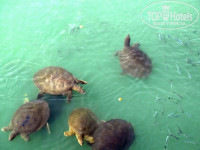 Собственный. Сам отель находится на второй линии, до моря минут 5-7 (кто как ходит) вниз, вдоль других отелей. Сразу оговорюсь, читала до этого отзывы о запахах еды или канализации, которые очень неприятны и портят «путь к морю», а также крутой горе, на которую приходится взбираться, возвращаясь обратно. Все это правда, но не критично. Канализацию иногда чистят машины, отсюда и запах, еда — понятно, нам же и готовят ее, а чтобы не карабкаться в гору, мы пользовались не центральным выходом, а боковой калиткой отеля. В октябре, теплокровным туристам, вода может сначала показаться прохладной 22-23 градуса, как в России летом. Слева впадает речушка, на которую мы ходили каждое утро в 10.00 кормить больших черепах. Ближе к речке, вода немного мутная и прохладная, а вот с противоположной стороны — теплая и чистая. Есть понтон. Вода умеренно соленая. Волн нет. Заход пологий, хороший. Дно без сюрпризов. Песок. Мы изначально выбирали именно этот район из-за пляжа. Температура воздуха 28-32 градуса, окончания сезона мы даже не заметили. Правда в последний день — 19 октября — пришел туман, говорят в это время у них начинаются небольшие дожди. Лежаков хватает, мы всегда занимали на первой линии, так как были с ребенком. Тут же в прокат можно взять матрас или надувную игрушку, спорт инвентарь и водные развлечения. Туристы приходят на пляж поздно, ближе к 9.00, что нас удивило. Да и вообще, в Турции все поздно как-то просыпаются. До этого мы были в Эмиратах, там в 6.00 уже все на ногах Солнце в октябре уже не так жарит, поэтому мы не обгорели, хотя и не пользовались ни кремами, ни маслами — все индивидуально, на себе не проверяйте!!! Загар за неделю получился приличный. Живности в море почти нет. Грустно. Маска так и пролежала в чемодане.
