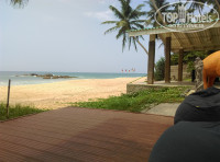 Отдыхали вдвоем с мужем. Когда приехали в отель, была проблема с поселением из-за того что компания джойн ап не предупредила отель. Плюс отелю, поселили, заполнили документы за 5 минут, хоть и приехали чуть раньше. Номер у нас был с видом на океан с панорамным окном, очень красивый вид. В номере чисто, есть телевизор, кондиционер, вентилятор, единственное не было фена и чайного набора. Персонал русский не понимает. В номере была ежедневная уборка, замена постельного и полотенец. Персонал улыбчивый, вежливый, обходительный. Если вам нужно порезать фрукты, они без проблем порежут и принесут их куда вам нужно, можно в номер, можно к бассейну. К бассейну выносят ежедневно чистые полотенца.Пляж возле отеля чистый. На территории отеля изредка можно увидеть варанов, маленький быстро прячется за забором, а тот что побольше медленно гуляет по территории и может зайти в помещение, но людей он не трогает. Еще по территории бегает очень много белок. {удалено модератором: несанкционированная реклама} наш гид Гриша не удосужился даже заехать и побеспокоиться о нашем поселении и добиться в номер чайника и фена. Все, что он сделал зашел в автобус, сказал, что вот он есть и заедет на днях, и все, больше мы его не видели, только раз позвонил предлагал экскурсию. Честно говоря у него не хотелось брать экскурсии с таким скотстким отношением к отдыхающим. Выбирали отель подальше от центра и маленький. Когда мы приехали, отель был почти пустой, как нам и хотелось. Еда в отеле вкусная, на шведский стол мы не попали, заказывали по меню.Отдыхнам очень понравился. Отель рекомендую тем, кто хочет уединения, отдохнуть от людей и городской суеты.