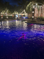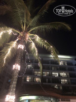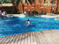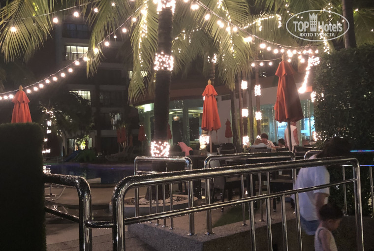 Территория отеля состоит из нескольких частей. 1. Ресепшн , там столики и диваны для ожидания минивэнов, на которых вас будут возить по экскурсиям, курилка. 2. Бассейн с баром. Не было ни разу, чтобы мы не смогли найти два свободных лежака, бассейн классный, тёплый, над ним и на пальмах рядом висят гирлянды. Ночью их включают, каждый вечер живая музыка. Очень классно было плавать при такой красоте.