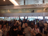 В отель заехали примерно около 8:00 утра. В автобусе гид говорил, что по приезду даже без браслетов нас обязательно покормят (группа, что заехала в отель с нами, состояла примерно из 10-12 человек. Все голодные и частично злые ). Нас не покормили)) Более того, практически дали по рукам, когда на терассе один из гостей взял тарелку и хотел положить туда выпечку для ребенка. Платите 5 евро и кушайте, а если нет, то "нет браслета- нет еды!" )) . О заселении: при оформлении на ресепшне дали сопроводительное письмо от Top Hotels менеджеру. Прогиб был, но небольшой, - нам дали номер на первом этаже с террасой и выходом к бассейну ...через ЧАС. По номеру- видно было, что очень спешили его убрать. Ванную видно не успели, - везде вода, всё залёпано, полотенца оказались с грязными пятнами непонятно какого происхождения. Но это не страшно, потому что, наконец-то лето, наконец-то отдых!! В 10:30 нам дали браслеты (УРРА!) , но еды уже не было нигде. Оставалось ждать обеда (до 13:00 уже не так и много времени). И так как мы запаслись девизом: "Наконец-то лето, наконец-то отдых!!", то нам его ничто не должно было уже испортить.