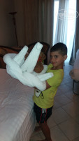 Уборка номера. Убирали каждый день,если это можно назвать убокой.в ванной как лежал клок волос на полу по заезду в номер, так он по ходу и сейчас там. Сразу денежку не ложили,но после того как начали крутить с полотенец всяких зверюшек,в благодарность начали ложить доллар.Ребенок был в восторге. (правда крутили с грязных и мокрых полотенец)