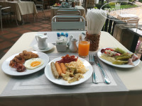 Брали номера с завтраком - он весьма хорош и большой выбор - есть яйца во всех видах, мюсли, все виды мяса (говядина, курица, свинина), несколько видов сосисок, достаточно выпечки. И фрукты. Завтраки с 7:00 до 10:00. Еды всегда хватало.