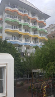 Я знал, что отель закрыт, сезон закончен. Мне об этом поведала бывшая башкирская хостес отеля. На зиму ее перевели в ФерсКласс. Там же трудится директор ресторана и несколько официантов. Все равно не мог пройти мимо, отель полностью законсервирован, лишь в коммерческой части пляжного бара сидят какие-то турки маргинального вида. Бассейны спущены, только в будке аниматоров дождь мочит старые бумажки. Не мог не зайти в соседний Гюнеш-маркет и не поговорить с хозяином о погоде и перспективах на бизнес, ведь столько турецкого вина там было летом куплено:)