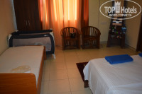 С аэропорта До отеля везли нас 3 часа По прибытию в отель я заполнила одну анкету и нам выдали ключи от номера. Номер оказался просторный, чистый с 2мя кроватями (это делюкс) кондиционером и вертушкой. Завтраки в отеле обычные : каждый день рис, лапша, яйца вареные или жаренные, овощи , чай, кофе , фрукты, встречались на завтраке картошка фри, куриные кусочки или нагетсы и рулетики шоколадные. От отеля до океана обычным шагом минут 5-7, Океан теплый, волны большие , с маленькими детьми купаться можно только справа от пляжа, там что-то типа лягушатничка))) . Но мы нашли рядом пляж "Turtlle bay " от отеля ехать на тук-туке минуты 3 за 150 рупий мы договаривались , там нет волн и можно взять в прокат маску с трубкой за 300 рупий в час и посмотреть черепах плавающих в океане и жующих водоросли.
