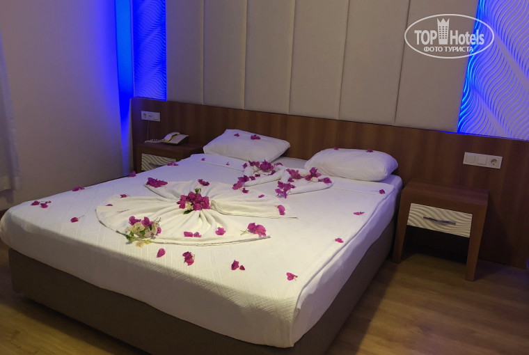 1. Номер был на 5 этаже. Номер хороший, просторный, всё есть. Сам отель новый (ну, либо реконструированный). Когда бронировали отель, написали, что мы молодожены, нам украсили красиво номер.