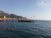 Отдыхали в сентябре 2018. Заселили нас сразу, у отеля отличный пляж, галечный. Есть специальные тропки чтобы не идти по гальке, когда заходишь в воду. А самое шикарное - пирс! Большая часть пирса под навесом, в отличие от соседнего отеля - Катамарана. Можно лечь и смотреть на рыбок, их очень много, разного размера. Люди их подкармливают, зрелище как в рыбном хозяйстве - куча мала из рыбок. Вода наичистейшая. Особенно мне нравилось спускаться сразу с пирса в воду, там глубина метра 2, тапки не нужны. Дно видно. Утром море тихое, ближе к обеду поднимаются волны. Номер был на 5 этаже, что замечательно, соседний отель упирался в окна как раз примерно до 4 этажа. Вид на горы и море. Территория у отеля неплохая. Есть пляжный бар, там обедать можно, подают лепешки с сыром и мясом, бургеры и прочее, жаренное во фритюре, и овощи. Еще за баром, после обеда раздавали мороженное, но найти это место нам удалось не сразу, они как специально так зашифровались. Отель на твердую 4.