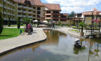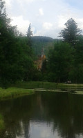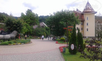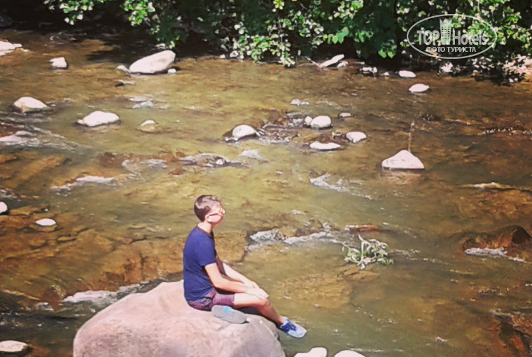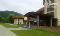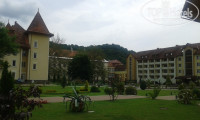 Красивая ухоженная территория ,есть пруд с рыбками и небольшой зоопарк, прекрасные виды на горную речку и зеленые склоны гор с небольшой(метров800) лыжной трассой с двумя подъемниками, так что можно и зимой полноценно отдыхать в этом санатории. На территории санатория также находятся -лечебные корпуса, бювет, три кафе, магазин, кинозал, хороший и красивый бассейн, сауна, спорт.площадка с тренажерами, бильярд.