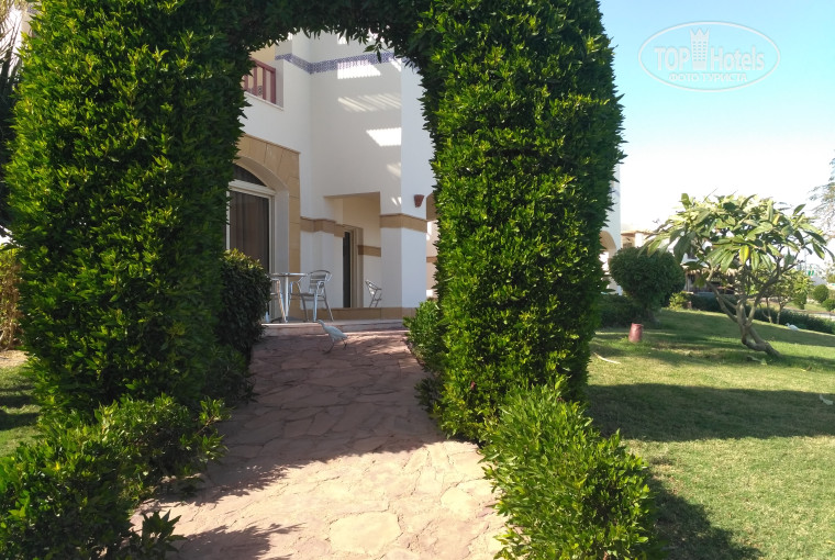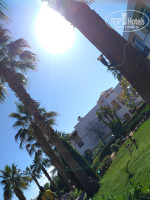 Территория очень зелёная и ухоженная, удовольствие там гулять: много разных пальм, алеея основная, цветы, клумбы, кусты, гуляют красивые птички по травке. Тихо, зелено, спокойно, ухожено. Есть на территории бассейн и бар возле бассейна. Одна из частей бассейна с подогревом, много людей отдыхали возле него и плавали в бассейне.
