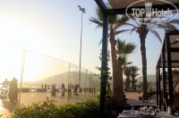 ПЛЯЖ песчаный. У отеля собственный, охраняемый, огороженный, через променад от отеля. Шезлонги, зонты… Места всегда есть, поскольку многие предпочитают отдых у бассейна. На пляже в основном русские и французы, иногда встречаются гости из Восточной Европы, но редко. Между отельным пляжем и океаном, в зависимости от прилива-отлива расстояние 50-300 метров. В отлив популярны игры в футбол, с мячом и ракетками, иногда волейбол. На постоянной полосе располагаются стулья и самодельные шатры марокканцев, которые после обеда плотной полосой расположены в океане и прыгают на волнах. Плавают местные не очень, но иногда встречаются любители заплыть подальше, но не слишком далеко. В отлив спасатели заплывать на глубину не дают. Но вообще мы плавали к дальним большим буйкам: согласно правилам, расположенным на информационных стендах вдоль всех пляжей, купальная зона как раз до больших буйков, которые от малых буйков расположены на расстоянии 500-600 метров, так что наплаваться можно вдоволь.