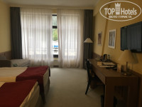 Номер нам достался на 7 этаже, с видом на реку и большим окном, что является редкостью для данного отеля (см фото отеля). Номер большой (две кровати, стоящие совсем рядом друг с другом и без возможности их раздвинуть (для командировки не самый лучший вариант), диван, холодильник, огромный шкаф), ванная комната тоже очень большая (но минус – стекло до середины ванны, в результате вода на полу неизбежна) . В большинстве номеров данного отеля нет балконов (только в люксах), так что выйти на балкон и насладиться видами и шумом реки не получится. Шум реки действительно сильно слышно - в первую ночь было ощущение, что за окном страшный ливень, но открыв утром шторы, и увидев яркое солнце, сразу все становится понятно. В целом номер порадовал. Номера с видом на другую сторону - это вид на вплотную стоящий отель и они меньше размером.